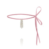 Diamonds or pink sapphires create a magical beam of light. With 3 rows of round diamonds or pink sapphires that hang from a pink velvet choker or pendant chain creating two distinct looks. Handcrafted at our Italian atelier.