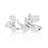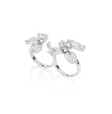 Celebrating the iconic Fleur de Lis motif, our diamond and gold double ring feature stunning diamond set flowers that spread across the hand with two 18 karat gold rings in white diamonds. Handcrafted by our Italian atelier.