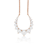 A beautiful diamond and pearl horseshoe necklace from our jewellery collaboration with Hannah Strafford-Taylor. Crafted in 18 karat rose gold, the horseshoe is set with seven iridescent white Akoya pearls and ten graduating brilliant-cut white diamonds strung on a long chain, ideal for layering as well as an everyday solo piece. The Horseshoe Diamond Pendant is also available in 18 karat yellow gold.