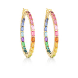 Delicate hoops in 18 karat yellow gold set with semiprecious stones from the Rainbow Collection. Celebrate the joy of merging timeless style with modern fine jewellery.