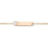 Express your personal style with our bespoke Name Bracelet in 18 karat rose gold. Set on a delicate rose gold link chain, let us engrave the plaque with your choice of meaningful words be it a name, date, initials or phrase.